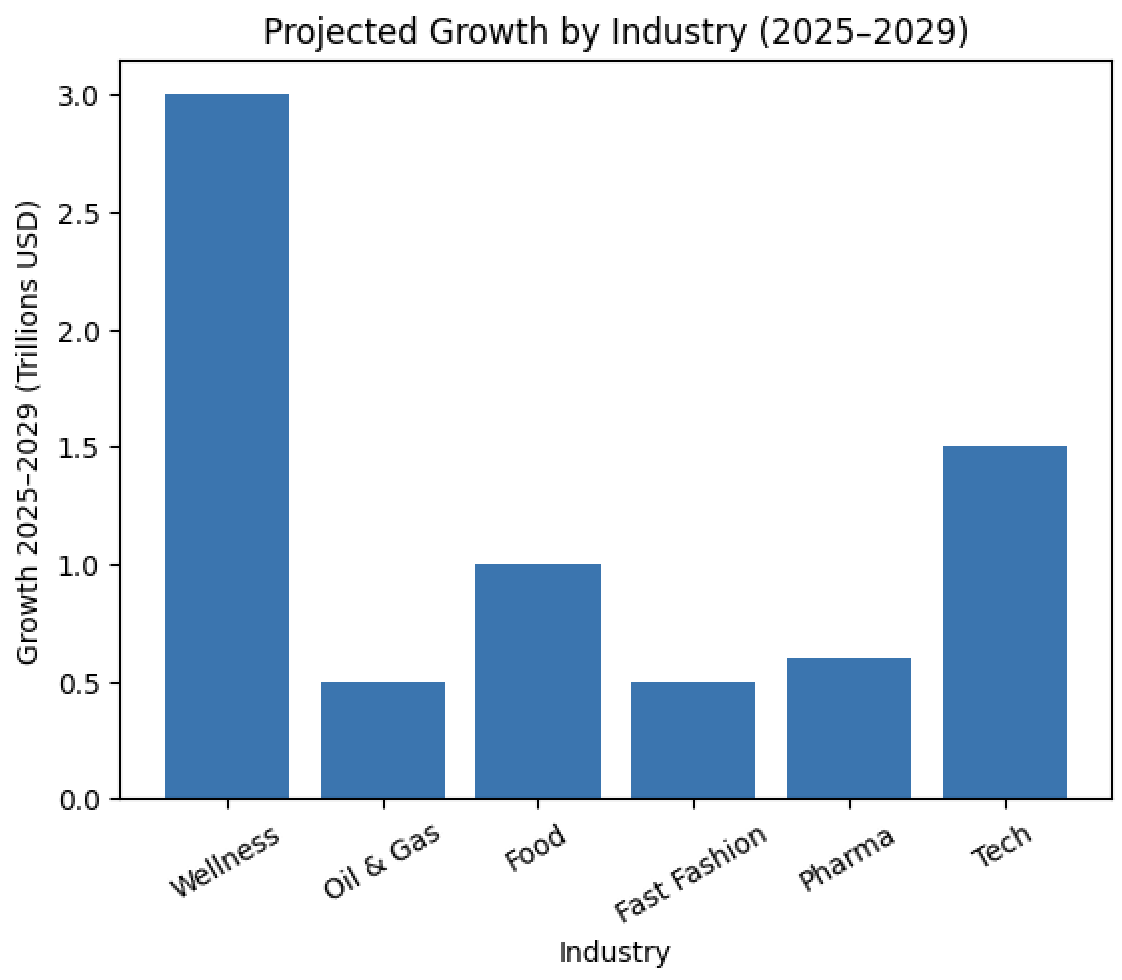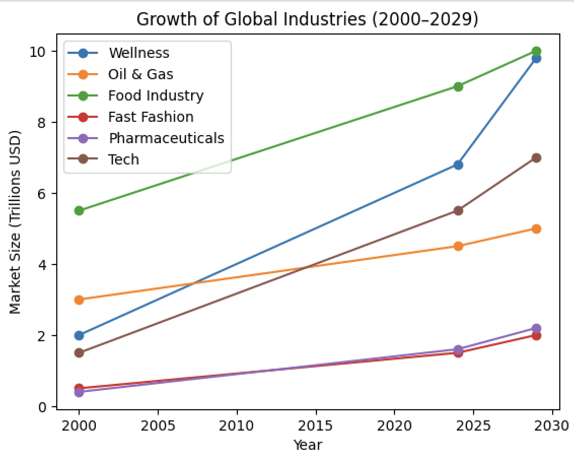 In 2000, the wellness economy was around $2 trillion. Today it’s $6.8 trillion and projected to rise to $9.8 trillion by 2029.