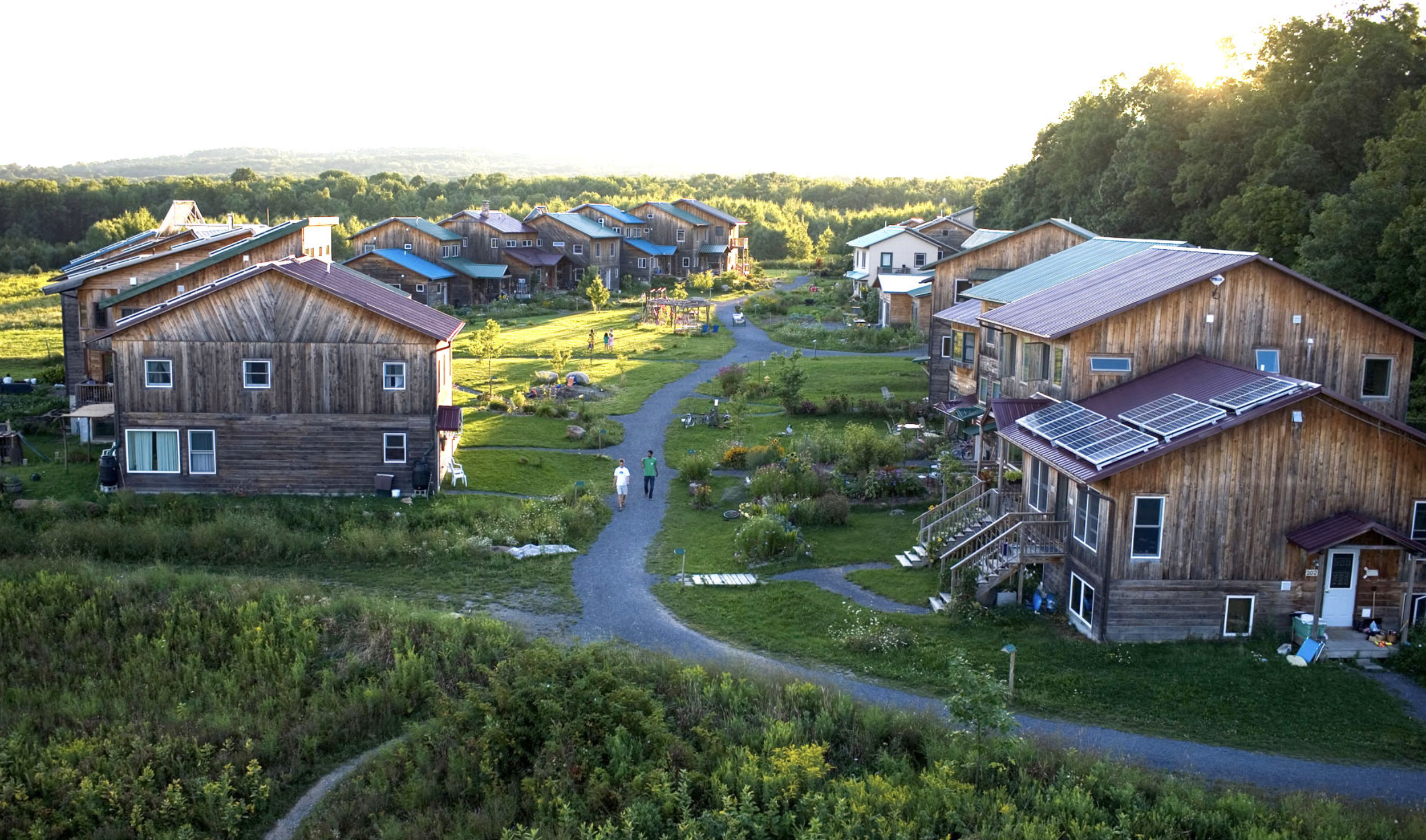 EcoVillage in Ithaca, NY, part of an international coalition aiming to strive innovative responses to social, environmental, and economic problems.